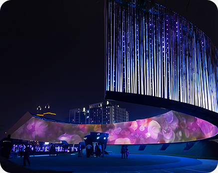 數(shù)字信息時代,華竣數(shù)創(chuàng)運用燈光秀、超清視頻、特種影院等新媒體視覺藝術的聲光影電炫酷效果調動觀者的所有感官全身心參與展廳視聽體驗,享受沉浸式心流狀態(tài)。